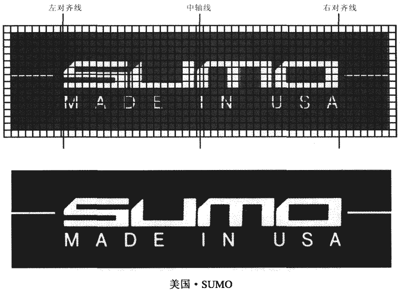 2.構(gòu)成形式:“標(biāo)志”與“文字”用水平直線式左右分離排列;兩形象的上下邊(點(diǎn))控制在上下水平線上,也就是用了“上下軸線對齊”方式。